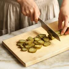 - 오이지의 양쪽 끝을 잘라내고 얇게 송송 썰어줍니다.