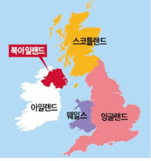 - 영국을 이루는 네 나라: 아일랜드, 스코틀랜드, 웨일즈, 잉글랜드